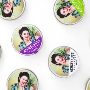 ACHSELKUSS ist ein wirksames und veganes Deo, das sich nicht entscheiden konnte, ob es ein Puder oder eine Crème werden sollte. So wurde es beides und bekam den Namen ACHSELKUSS.
