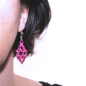 Modernes Grafikdesign verwandeln wir in dreidimensionale Miniaturskulpturen, die als Schmuck bei Arbeit, Feiern und Tanzen angenehm getragen werden. Durch die dreidimensionale Architektur der Schmuckstücke, entfalten die Ohrringe bei Bewegung des Kopfes immer neue Muster aus Schatten und Licht, das Formenspiel verändert sich je nach Betrachtungswinkel.