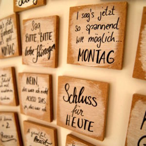 Es wird afoch vü zweng g´locht und deshalb werden in erster Linie Schilder, Home und Lifestyle Accessoires mit lustigen Statements produziert.