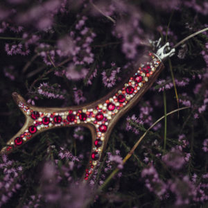 Die Designerin, Viktoria Seekircher, ließ sich von einer Saga aus ihrer Kindheit inspirieren! Ihre Großmutter erzählte ihr immer, dass bei Vollmond die Geweihe der Rehböcke und Hirsche anfangen in vollem Glitzer zu erstrahlen. In einer der besagten Vollmondnächten, ging sie auf die Suche nach den mystischen Waldtieren und fand am Boden ein abgeworfenes Geweihstück, dass vom Mond angestrahlt wurde. Am nächsten Tag jedoch war der Glanz erloschen! Das schöne Glitzern entstand nur durch den Mondschein, der aber immer wieder kehrte! Mit Wild Crystal möchte die Designerin die Erinnerungen aufrechterhalten und kreierte somit etwas Einzigartiges!