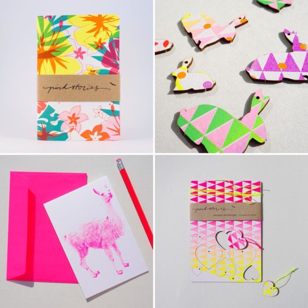 Pink Stories ist eine kleine Manufaktur aus Murnau am Staffelsee. Sie hat sich zum Ziel gesetzt, mit leuchtenden Farben die Welt ein bißchen fröhlicher zu machen. Pink Stories ist in drei verschiedene Bereiche aufgeteilt:Pink TowndesignIn diesem Bereich versucht Pink Stories den Charakter von besonderen Orten einzufangen und in hippe Souvenirs umzusetzen.Pink PapersPink Papers ist handgemachter Siebdruck in Neonfarben. Das Sortiment enthält Karten, Kunstdrucke, Dekoartikel, Stempel und vieles mehr.Pink LamaPink Lama wickelt…